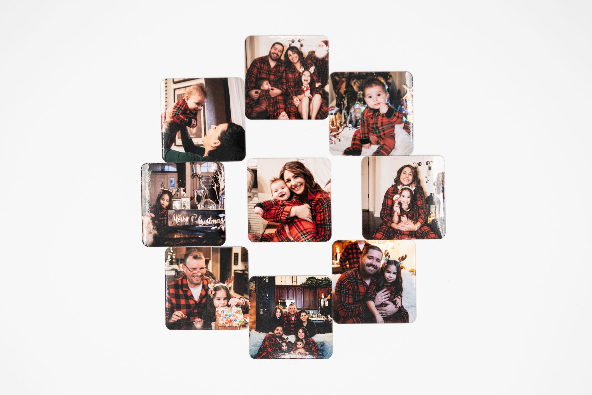 Introducing our set of nine (9) Custom Photo Slim Magnets – the perfect solution for adding a touch of charm to your space with minimal impact! Each magnet measures 2" x 2", offering a sleek design with a thickness of only 16mil. These magnets are specifically created for decorative purposes, making them ideal for use on refrigerators, whiteboards, magnetic boards, or any flat metal surface.